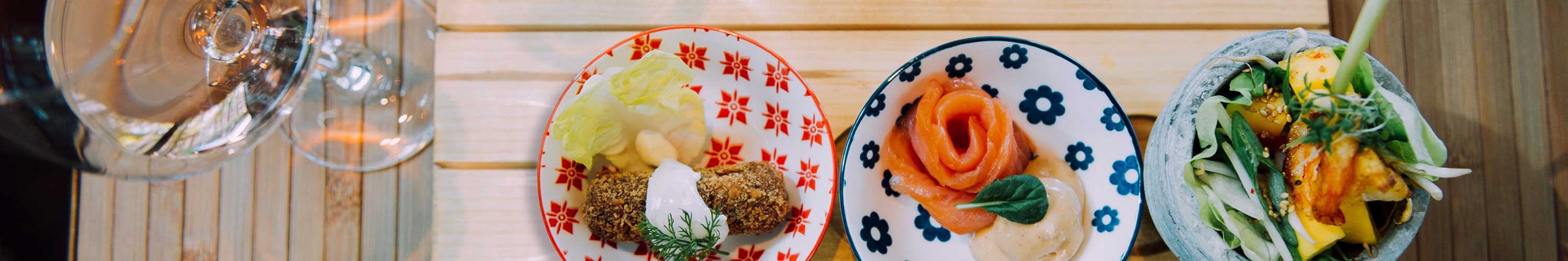 4 st. dim sum / wakame salade / 4 st. sashimi van tonijn / avocado / kroepoek / hoi sin mayonaise